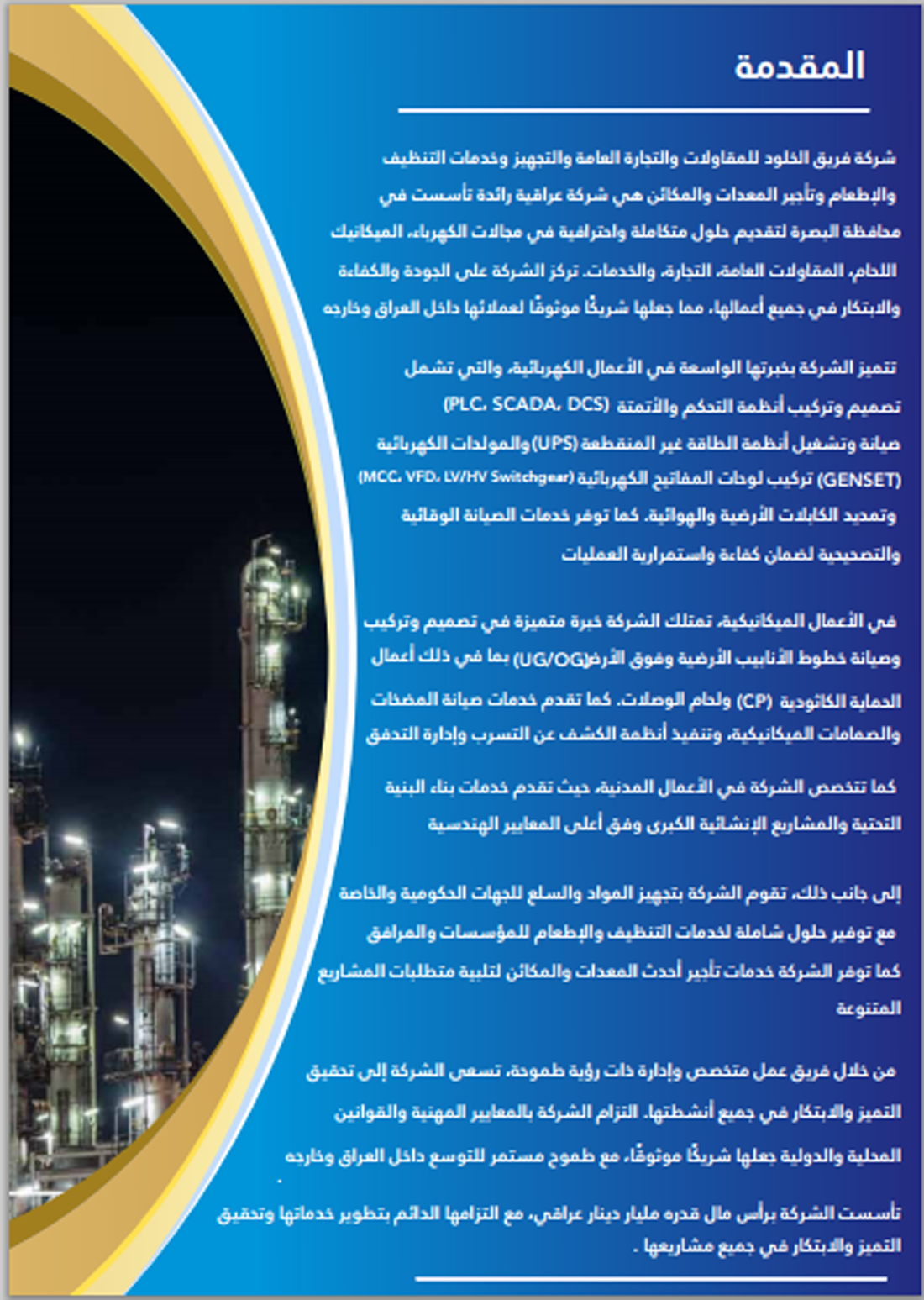 شركة فريق الخلود للمقاولات العامة والتجارة العامة وخدمات الاطعام والتجهيز والتنظيف وتأجير المعدات والاليات